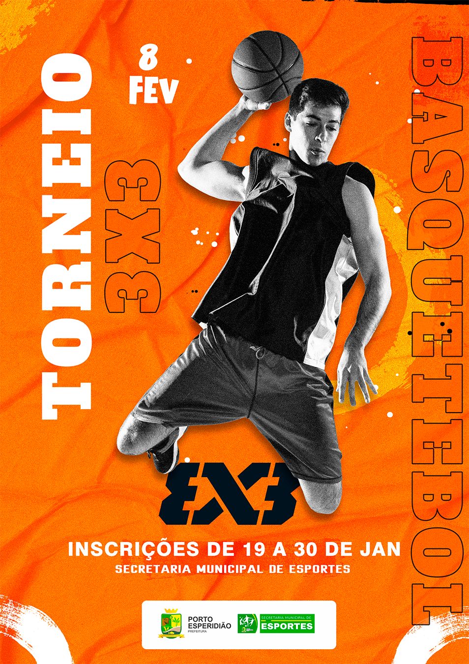 A Prefeitura de Porto Esperidião, por meio da Secretaria Municipal de Esportes, anuncia o Torneio Aberto de Basquete 3x3! 🏀