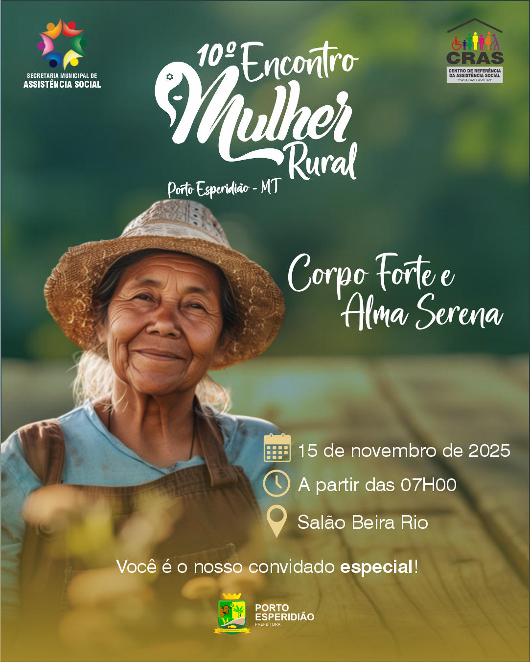 A Prefeitura de Porto Esperidião, por meio da Secretaria Municipal de Assistência Social, convida toda a população para participar desse momento especial que celebra a força, a garra e a serenidade das mulheres do campo! 👩🏼🌾